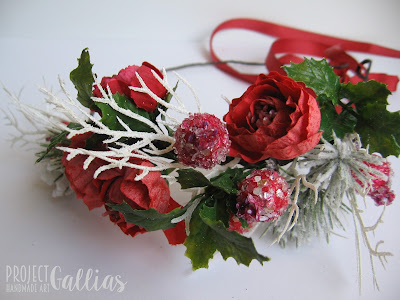 W tym celu wycięłam tagi z papieru typu 'kraft'. Jeden ostemplowałam a na drugim przykleiłam wycięte wcześniej listki ostrokrzewu i dokleiłam małego pompona.